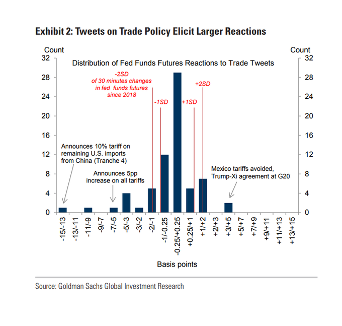 Goldman says Trump's tweets have hit market pricing for the Fed
