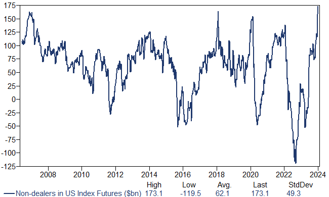 US index futures overall length hits record high
