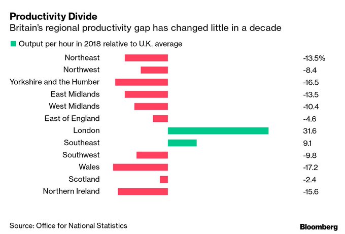 The gulf between the best and worst-performing regions of the UK is laid bare in new figures