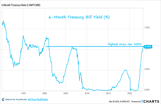 The 6-Month Treasury Bill yield has moved up to 5.34%, its