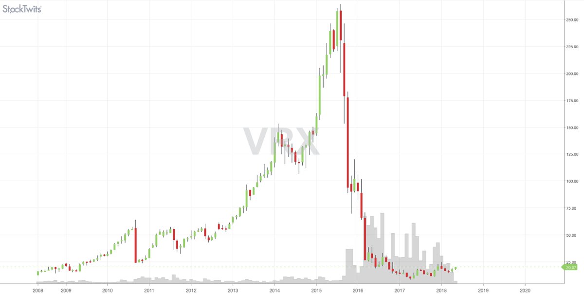 Valeant changed its name to Bausch Health. But VRX is still down 93% since hitting all-time highs of $263/share in 2015