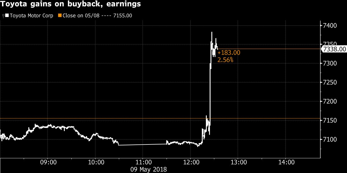 Toyota shares jump the most in 7 months after it announces a stock buyback