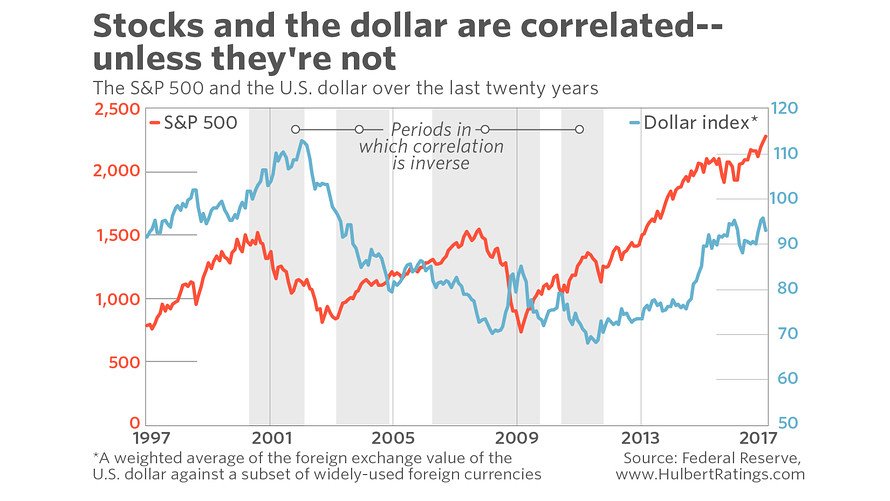 Sometimes a falling dollar appears to be good for stocks. But not always