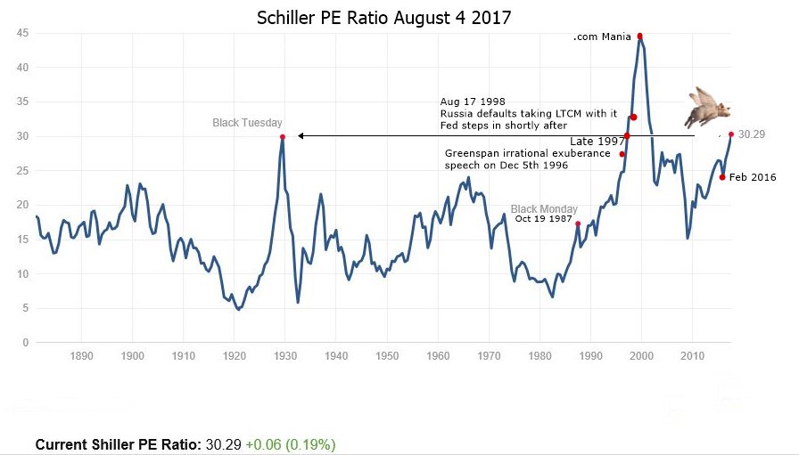 The S&P 500 Schiller P/E Ratio today is as high as it was before the Black Tuesday CRASH