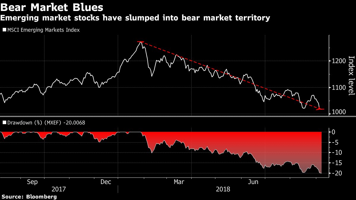 Emerging-market stocks have tipped into a bear market, and investors expect more short-term pain