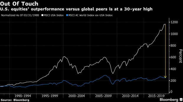 U.S. stocks are beating global markets by the widest gap in at least 30 years, but that dominance may soon be over