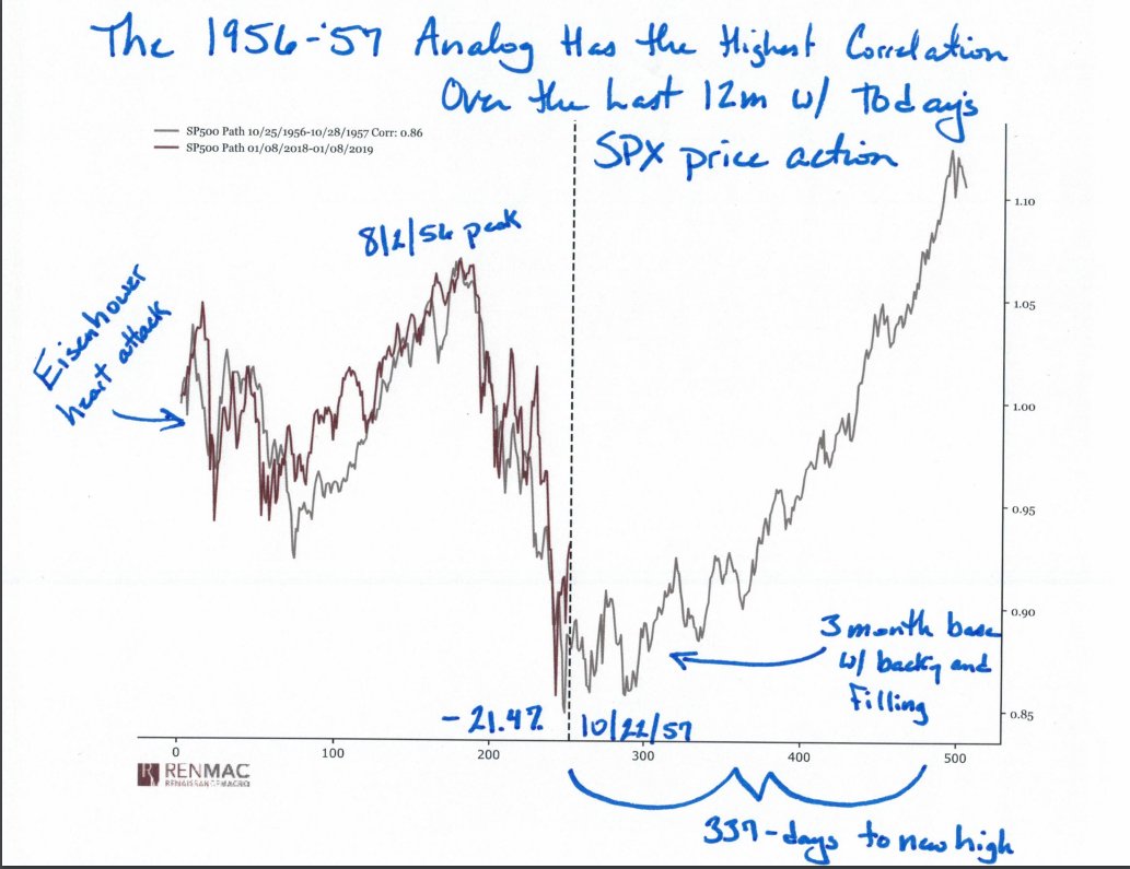 Stocks are trading much like they did in 1957, just ahead of the "Eisenhower recession"