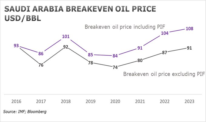 Saudi Arabia's breakeven oil price continues to increase |