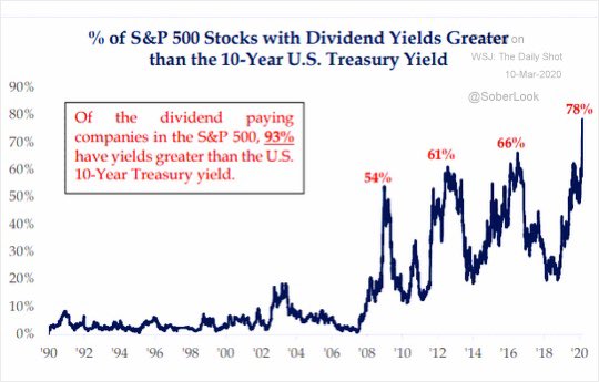 78% of S&P 500 stocks now have dividend yields above 10yr Treasury yield