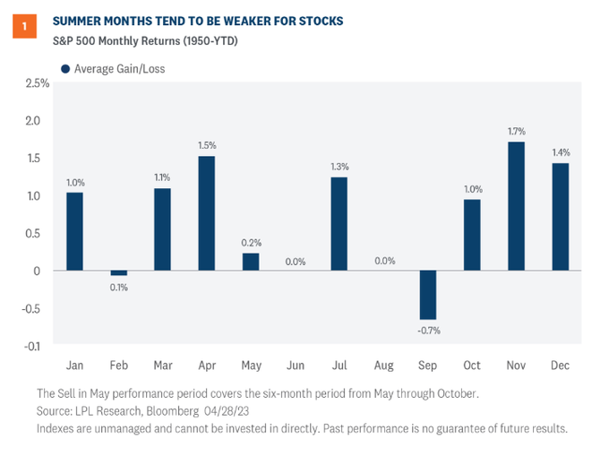 Summer months tend to be weaker for stocks, particularly if we see negative leading economic indicators