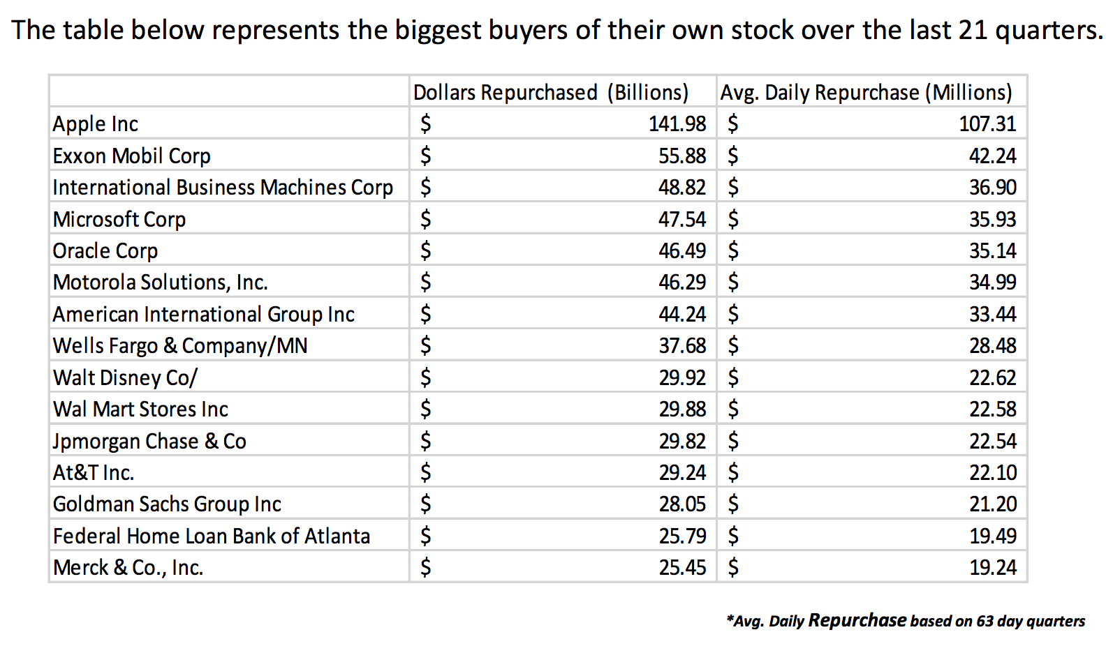Apple has bought, on average, $107 million of stock EVERY day for the last 21 quarters