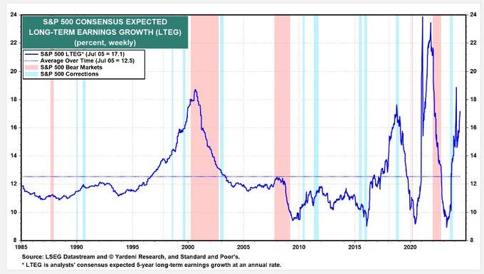 Analysts expect S&P 500 EPS growth to average 17.1% annualized over the next five years.