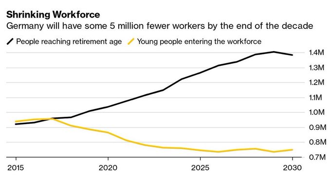 With 5 Million fewer workers in Germany in just few years who is supposed to pay for pensions and healthcare for all the new retirees?