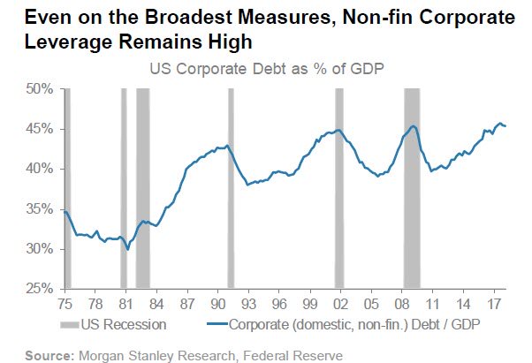 The last two times corporate debt as a % of GDP was this high, the US entered a recession