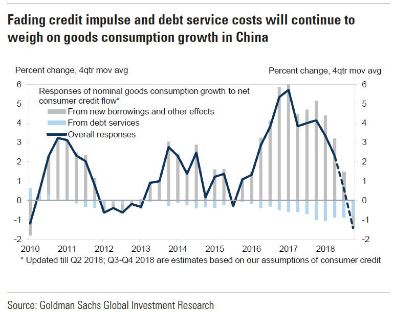 If this Goldman forecast of China's credit impulse is correct, there will be a global recession in Q1 2019