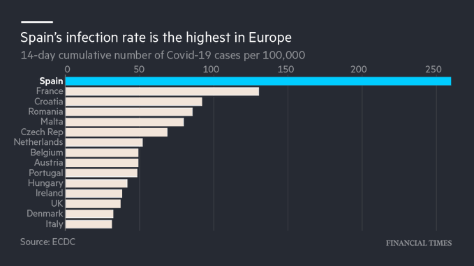Over the past two weeks, Spain’s Covid-19 numbers have risen