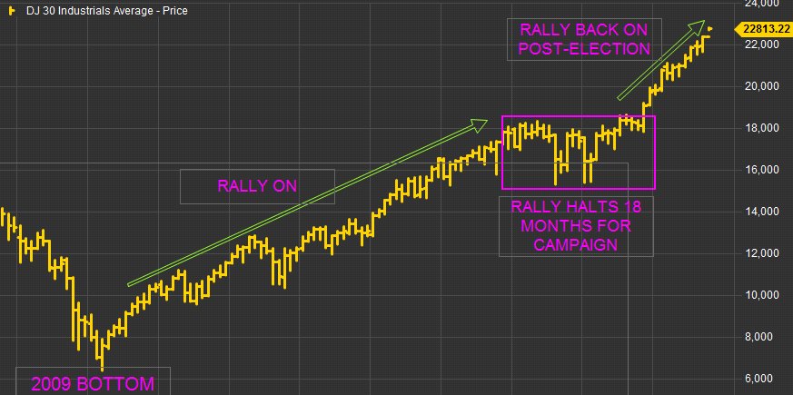 Brian Sullivan: It really hasn't been an 8 year bull market for stocks. It's been more 5 1/2 years .. an 18 month break for campaign .. then rally on again