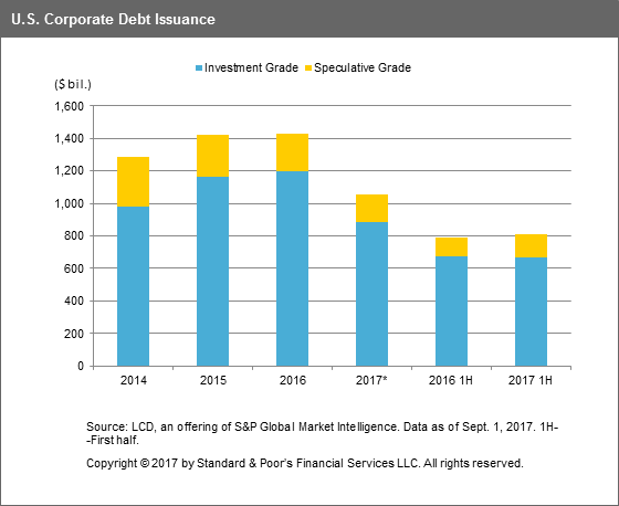 S&P: US corporate debt issuance continues to rise & is up 3% in 1H 2017 year-over-year