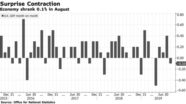 The UK economy unexpectedly shrank in August as Brexit fears mounted, but it remains on course to avoid an imminent recession