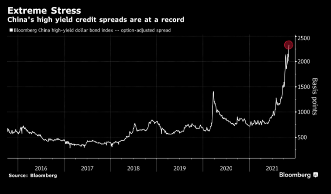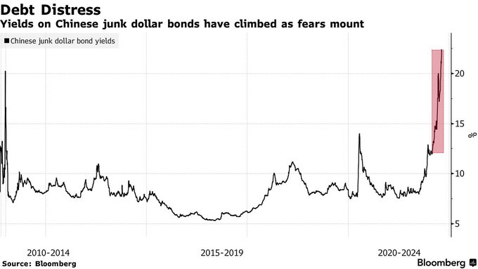 China seems to be stress-testing its entire financial system as concerns around property debt spread Yields on China's junk-rated dollar debt are now at a whopping 24%!