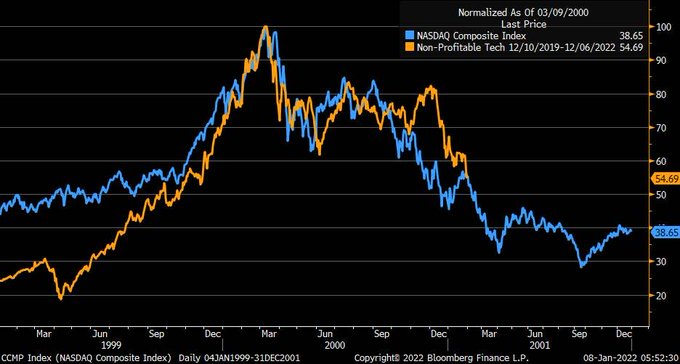 quite similar to that of non-profitable tech cohort (orange)