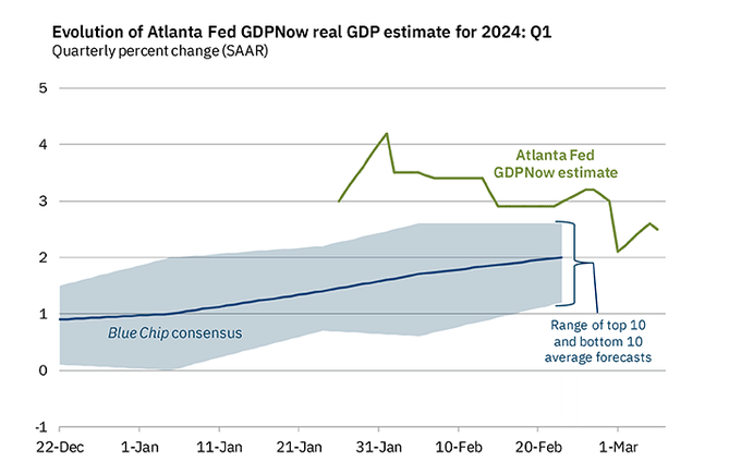Atlanta Fed GDPNow looks for 2.5% growth in Q1 2024, revised slightly lower after yesterday's data