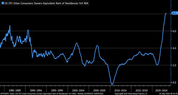 of CPI, +8.1% year/year in April vs. +8% in prior month |