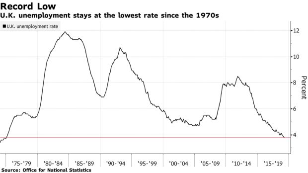 Unemployment in Britain stays at a 44-year-low of 3.8%