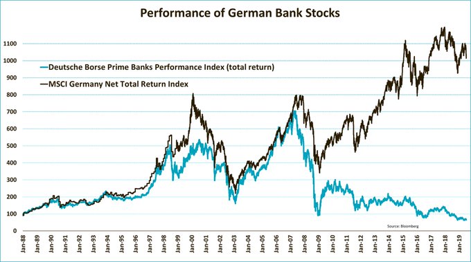 The demise of an industry in one chart! German bank stocks have lost 90% of their value since the great financial crisis.
