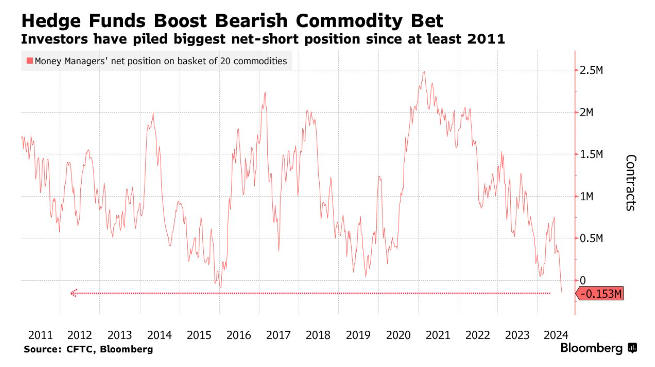 Hedge Funds have now built the largest net short position on commodities in 13 years
