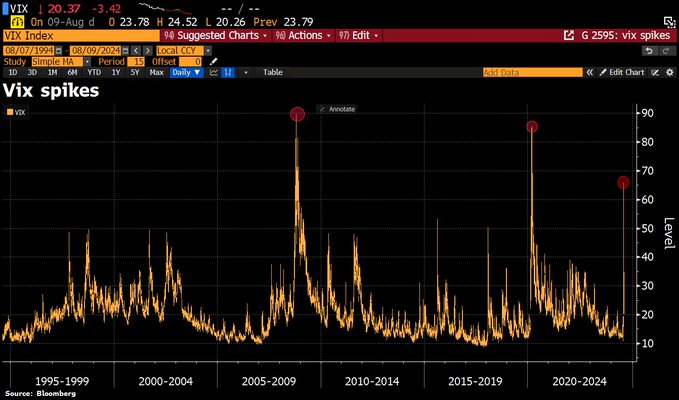 To put things into perspective: Over the last 35yrs, the whole life of Vix history, there have only been 2 prior episodes of Vix trading >60: The 1st was during GFC, the collapse of Lehman, the 2nd episode occurred during Covid and we had a 3rd occurrence: that was last Monday.