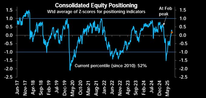 Equity positioning saw a modest retreat last week, but remains at the 52nd percentile.