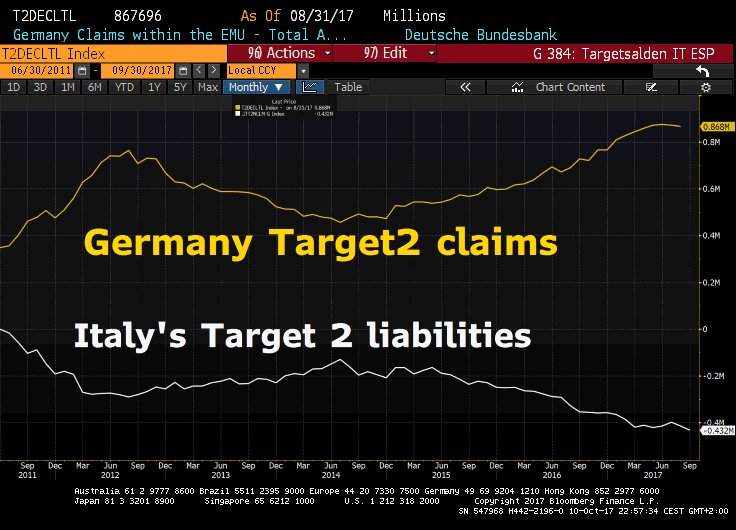 Italy's target2 liabilities hit fresh high at €432.4bn despite better econ data, meaning Italians bring their money out of the country