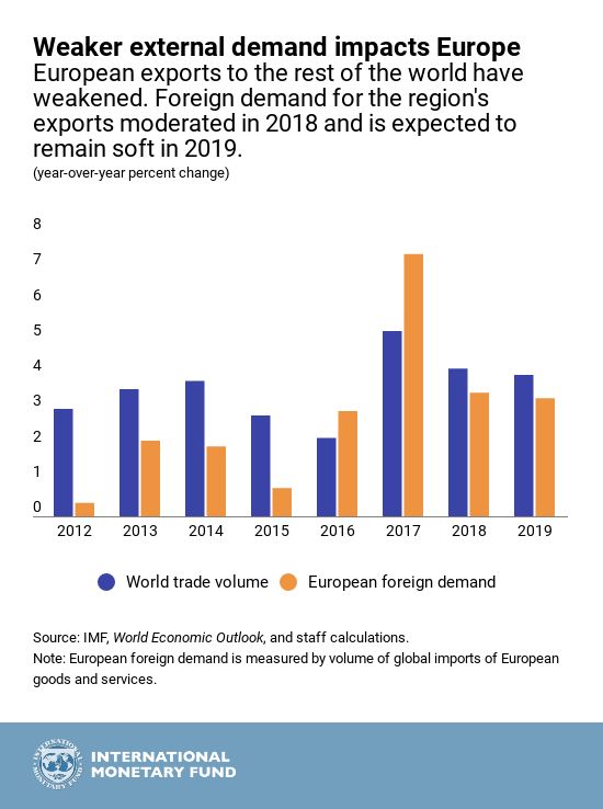 Weaker demand for European goods from the rest of the world