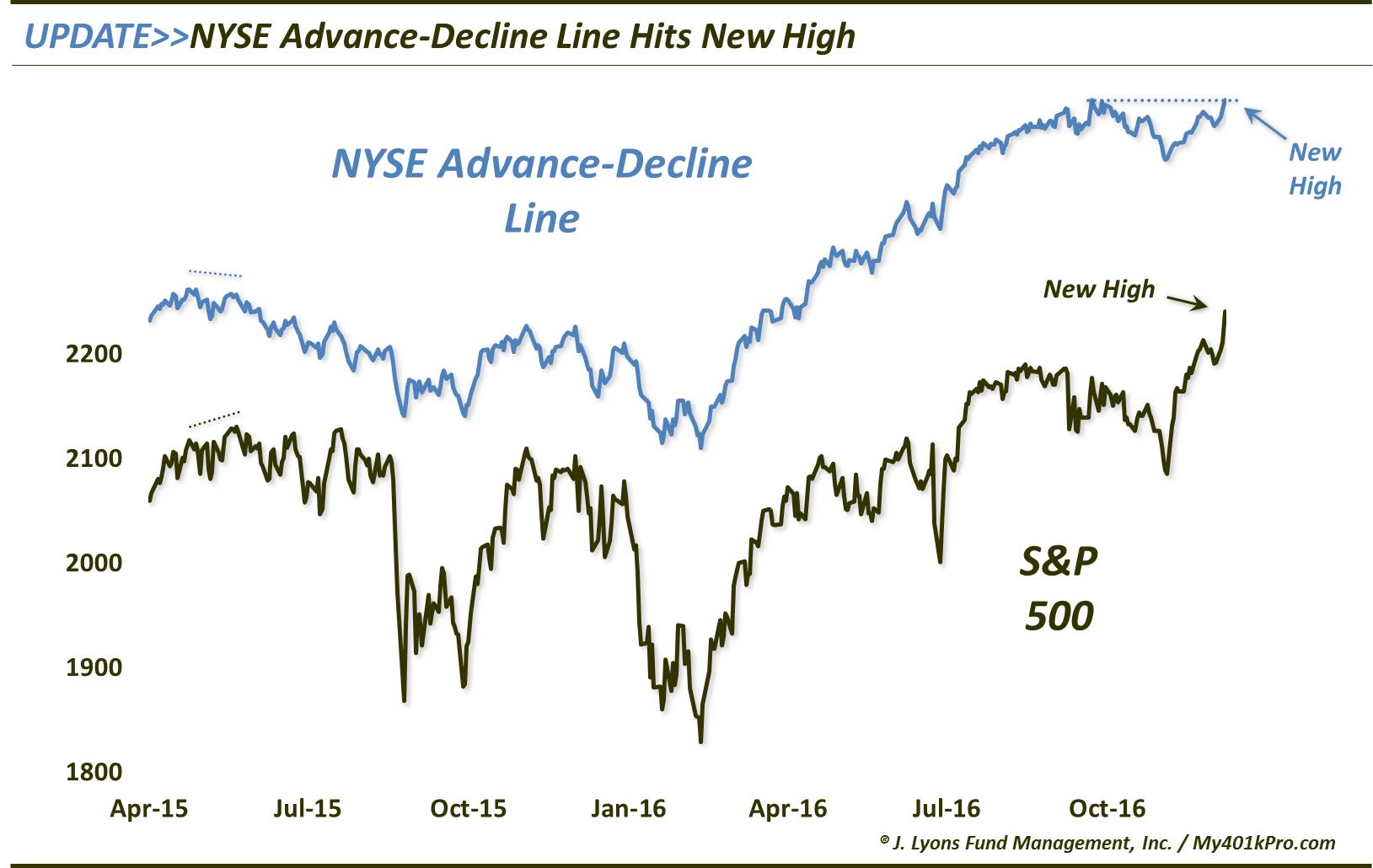 The NYSE advance-decline set a record yesterday. It climbed to new all-time highs