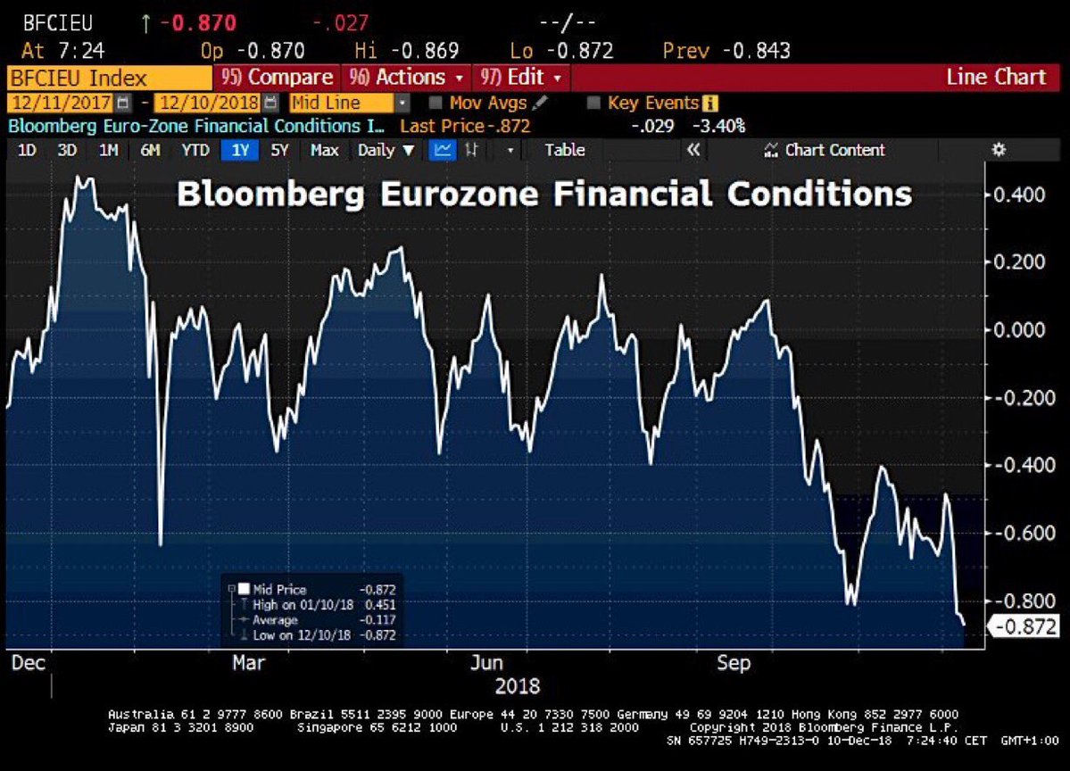 EUROZONE: Financial conditions in the Eurozone have dropped to lowest since 2016