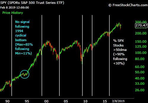 Breadth-recovery watch: Percentage of SPX stocks >50dma reached 88% on February 5th after plunging below 10% in December