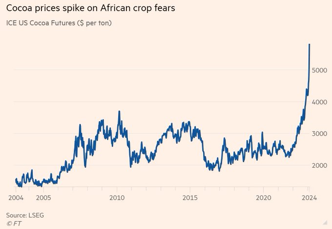 Cocoa soared to a new record high last