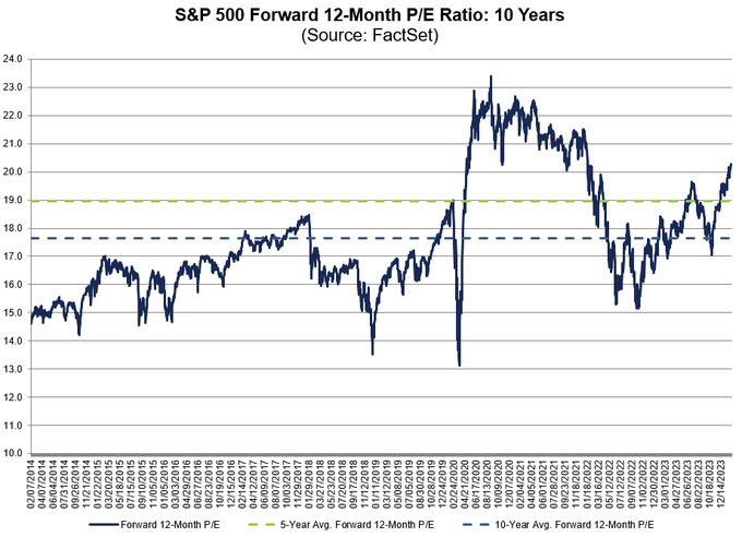 12-month P/E ratio for SPX of 20.3 is above the 5-year