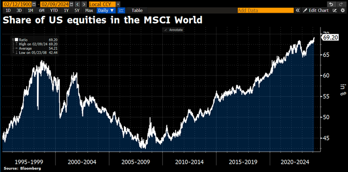 meant that US equities now have a weighting of ~70% in the