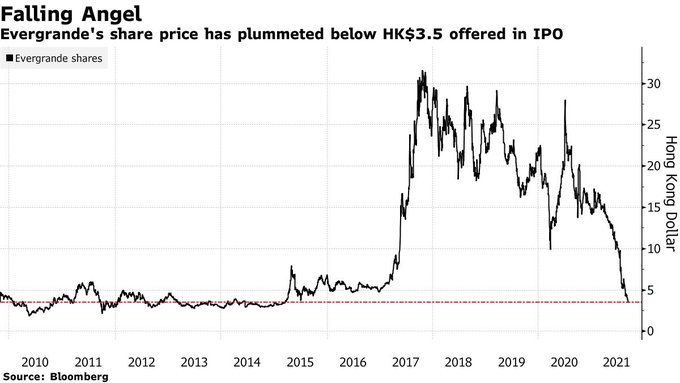 Evergrande shares slump below their 2009 IPO price after the developer is downgraded by Fitch