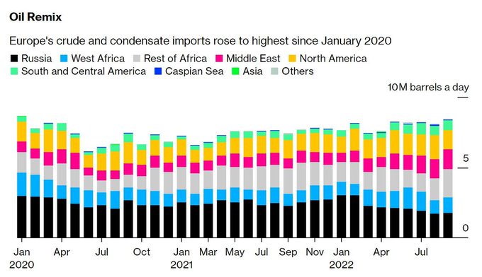 Europe is succeeding in diversifying its crude purchases ahead of the upcoming sanctions on Russia