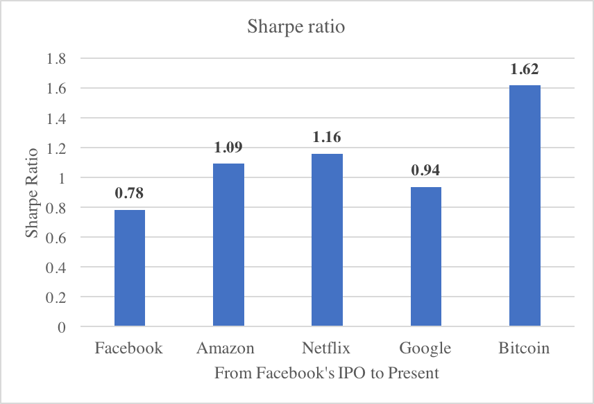 People knock bitcoin for its volatility (ie, risk), but it has provided better risk adjusted returns than FANG stocks since facebook's IPO