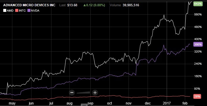 How stunning has the rally in semiconductors been? This is NVIDIA and AMD since last year