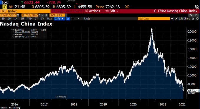 China stocks trading in US tumble >10% w/Pinduoduo -17.5%, Jinkosolar -17%, JD -16%, Alibaba -8%, Niu -7.4%. Nasdaq China Index drops to lowest level since 2016
