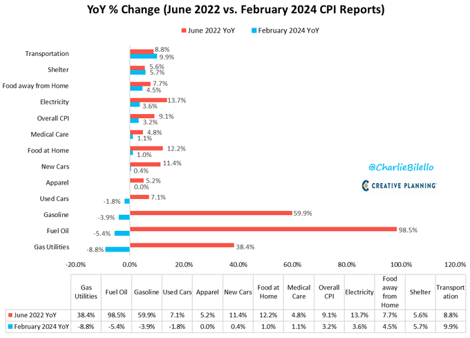 The US Inflation Rate (CPI) has moved down from a peak of 9.1% in June 2022 to 3.2% today.