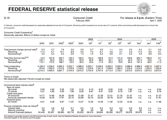 Consumer credit comes in at -$0.81B vs $15B