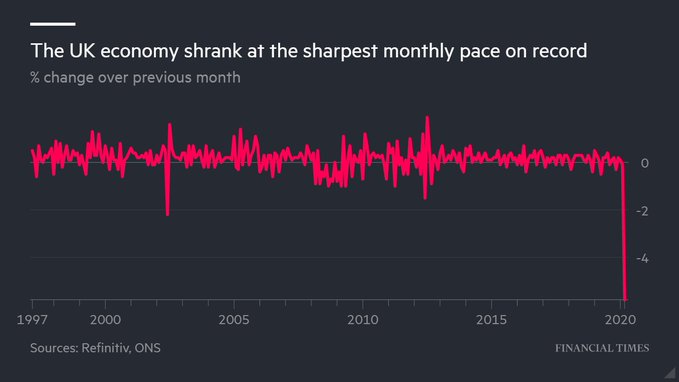 The UK economy shrank 5.8% in March, the fastest monthly pace on record, as the coronavirus lockdown abruptly stunted demand. Follow our live coverage