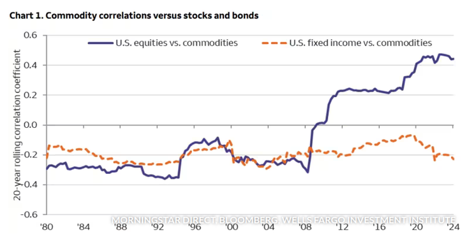 Stocks and commodities are increasingly correlated |