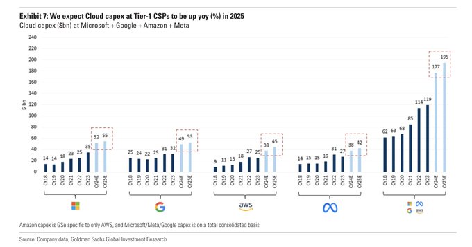 Goldman expects cloud capex at Microsoft + Google + Amazon +